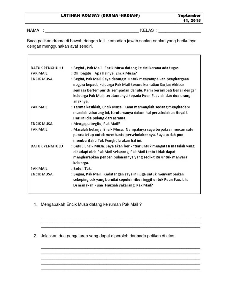 Soalan Objektif Komsas Tingkatan 2 : Komsas Tingkatan 2 Worksheet